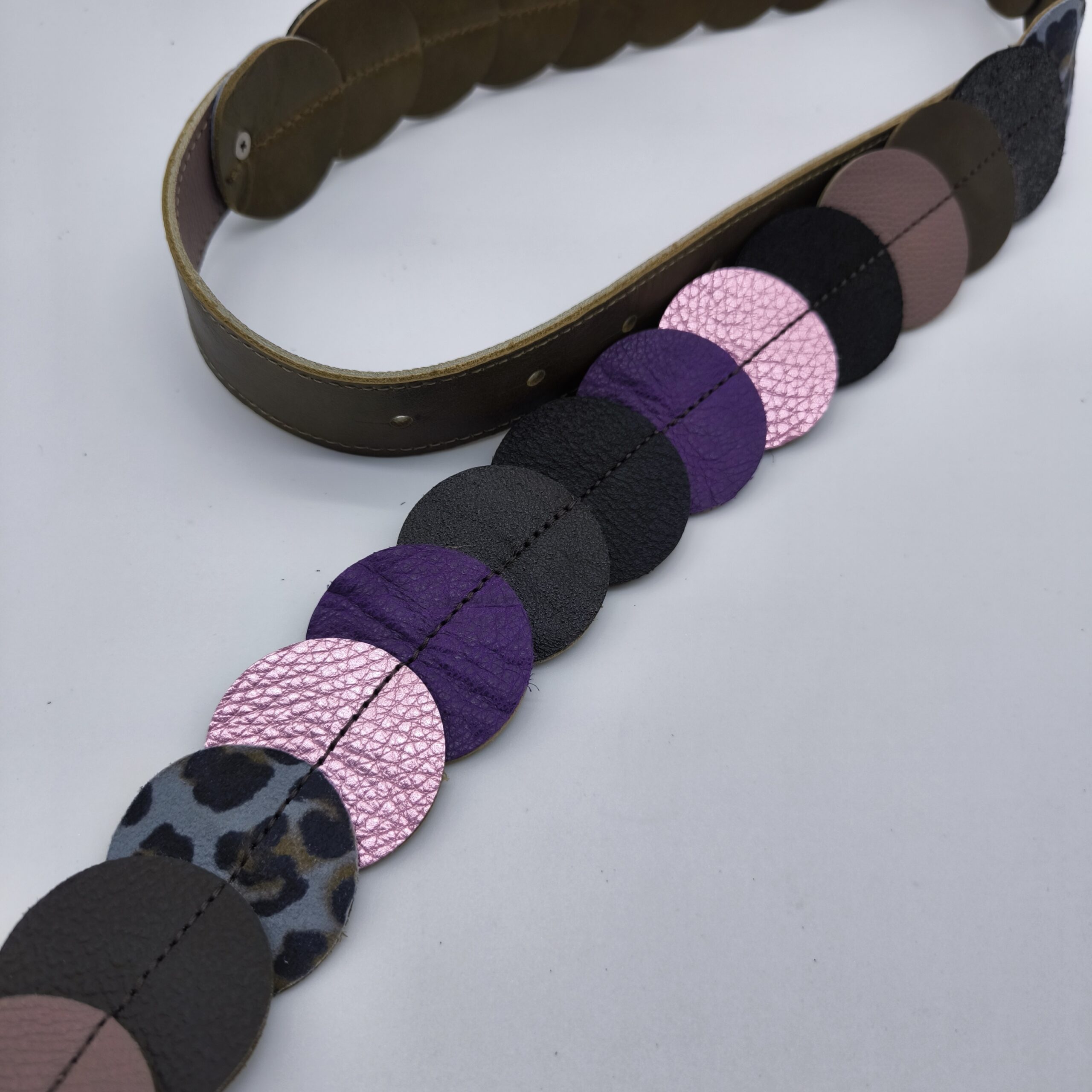 Egyedi, kézzel készített öv egymásra illesztett bőrkarikákból, amely különleges textúrát és karaktert ad bármely öltözéknek. Kényelmes viselet, hétköznapi és alkalmi szettekhez is stílusos kiegészítő.
