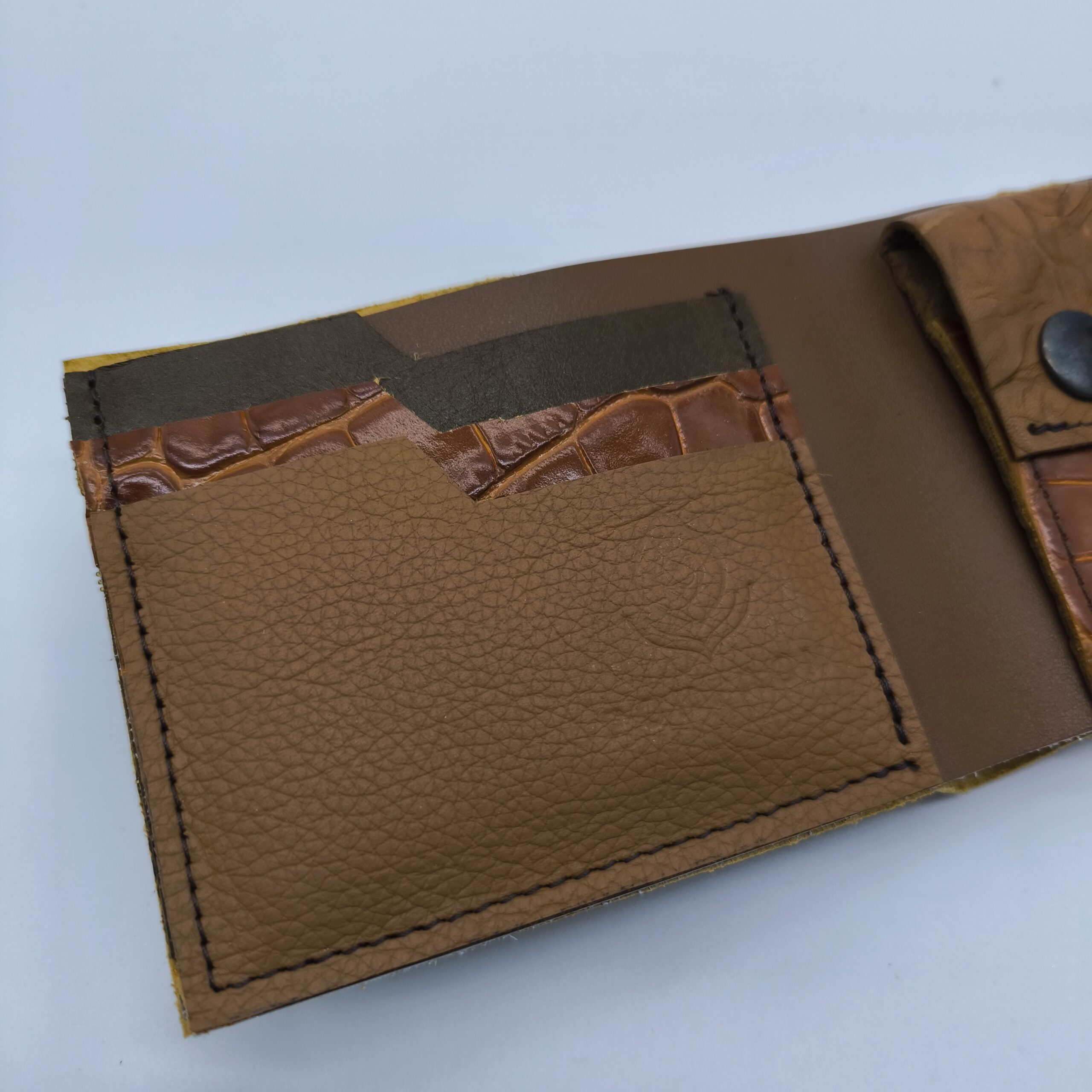 Pénztárcáink az újrahasznosítás jegyében a leeső bőr darabokból készülnek, ezért sokszor egyedi és megismételhetetlen darabok születnek. Természetes bőrből, kézzel szabva és varrva készítjük őket.