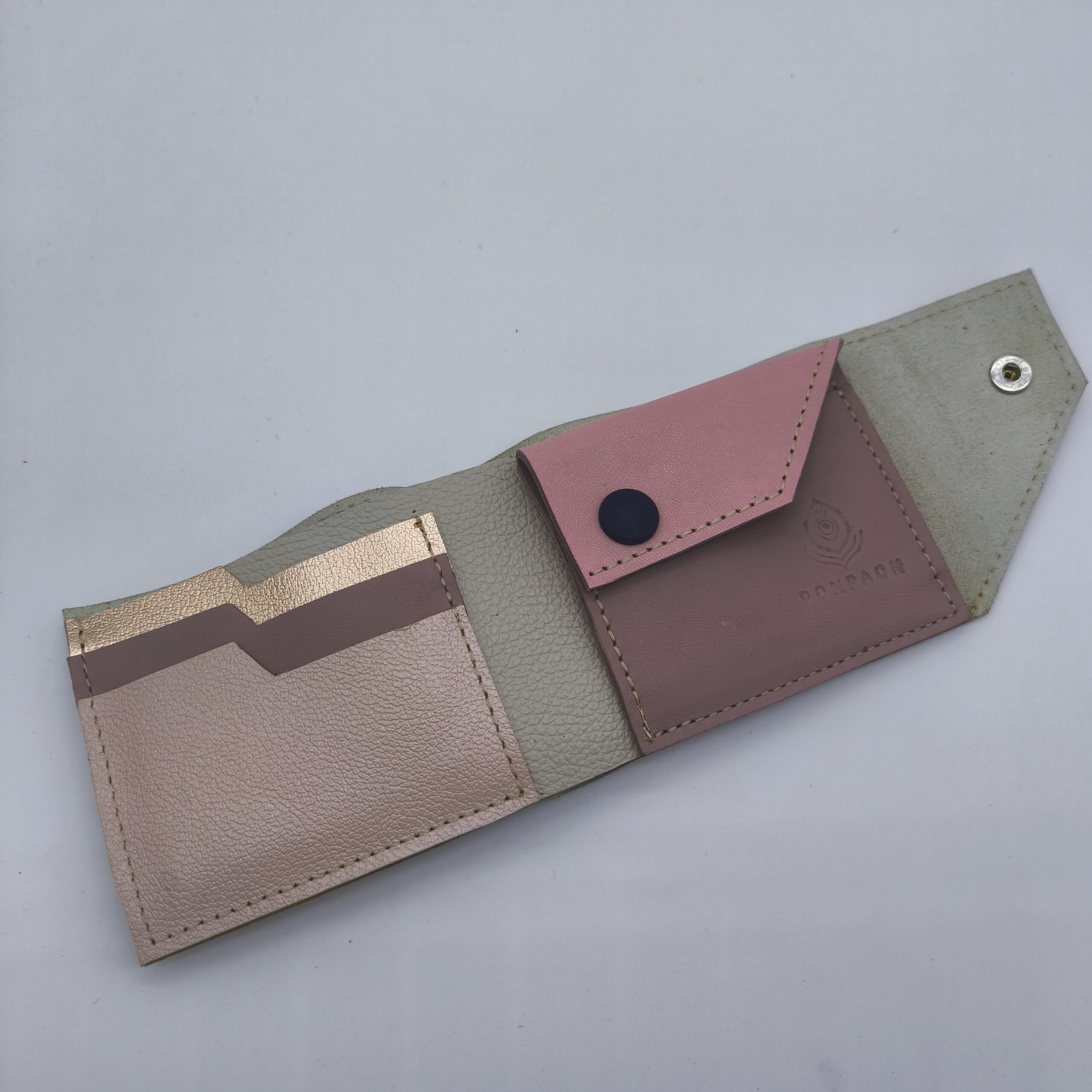 A pénztárca belsejében van hely kártyáknak, apró és papírpénznek, de jól elfér benne a román személyi is.